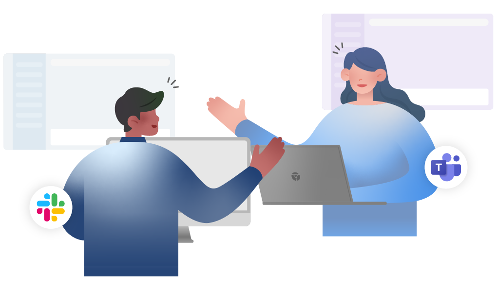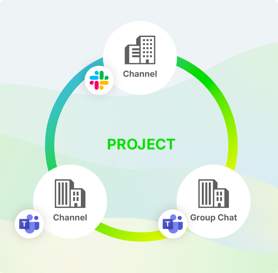 Pritellを使えば、SlackとTeamsを連携でき、顧客やチームメンバーとのコミュニケーションをそれぞれが好きなツールで行えます。複数の部署や企業との協働プロジェクトでも、円滑なプロジェクト推進をサポートします。